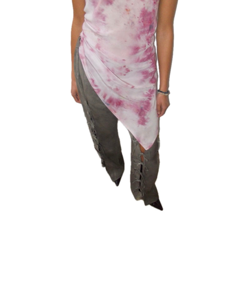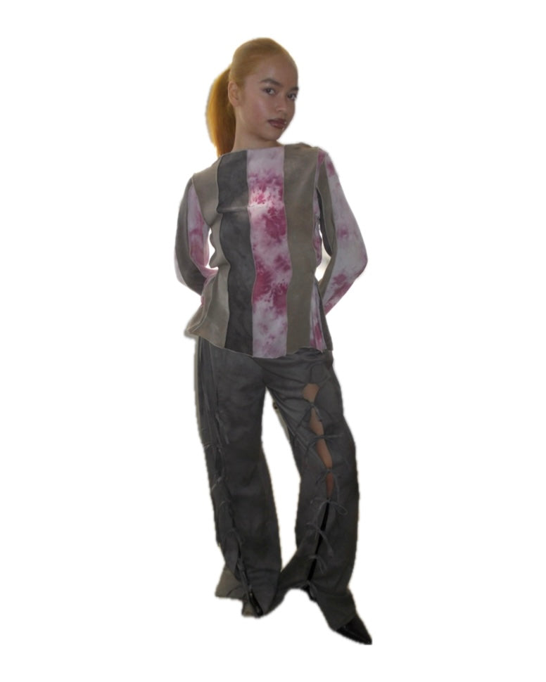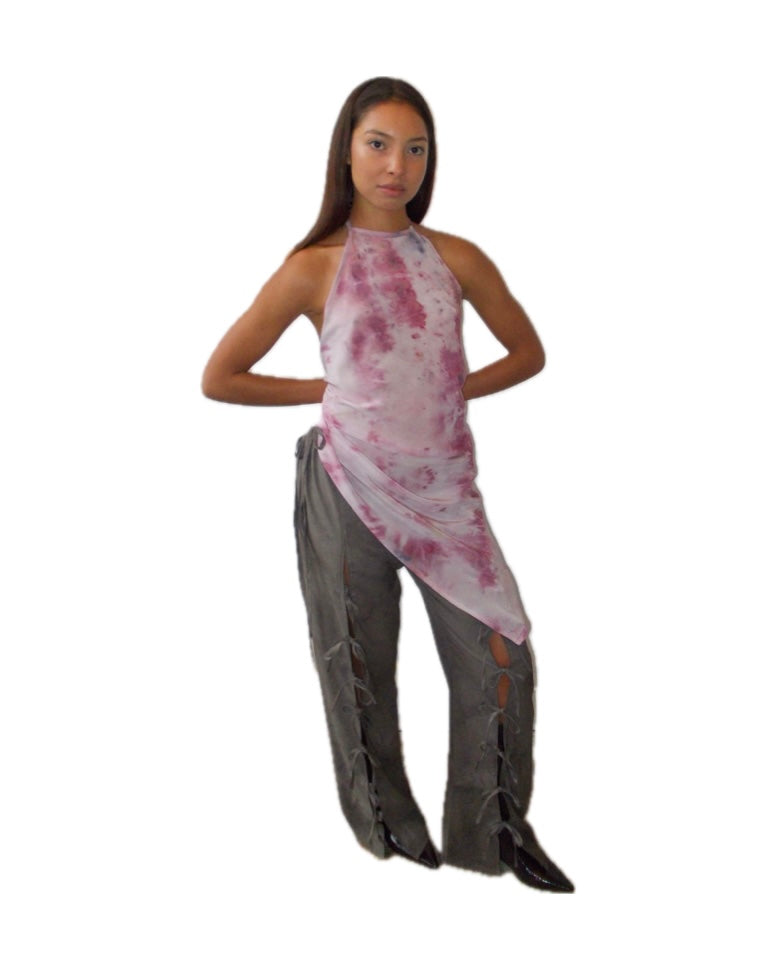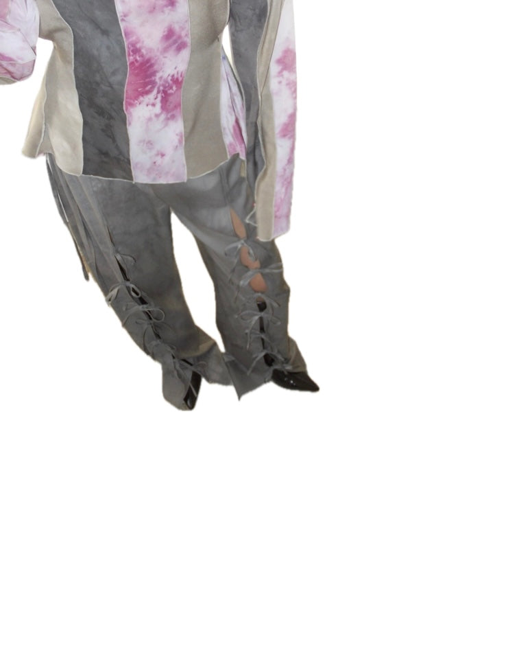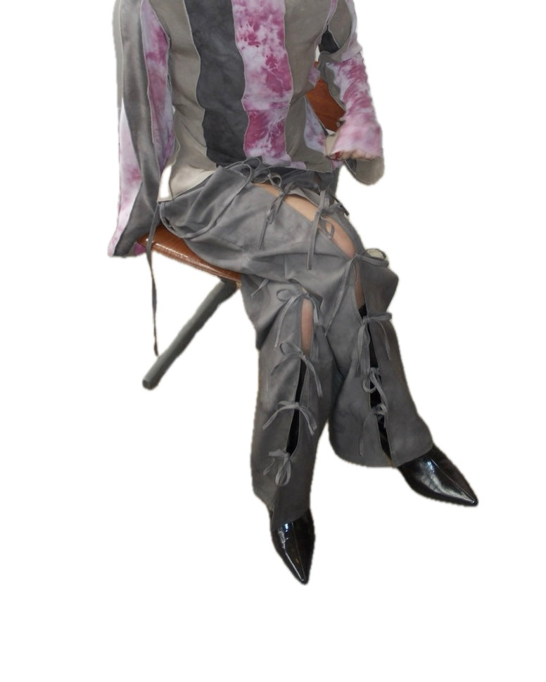 Straight pants made of woven wool with a tie in tunnel construction, adjustable to your preferred fit. The front leg is decorated with bows to tie together the front.