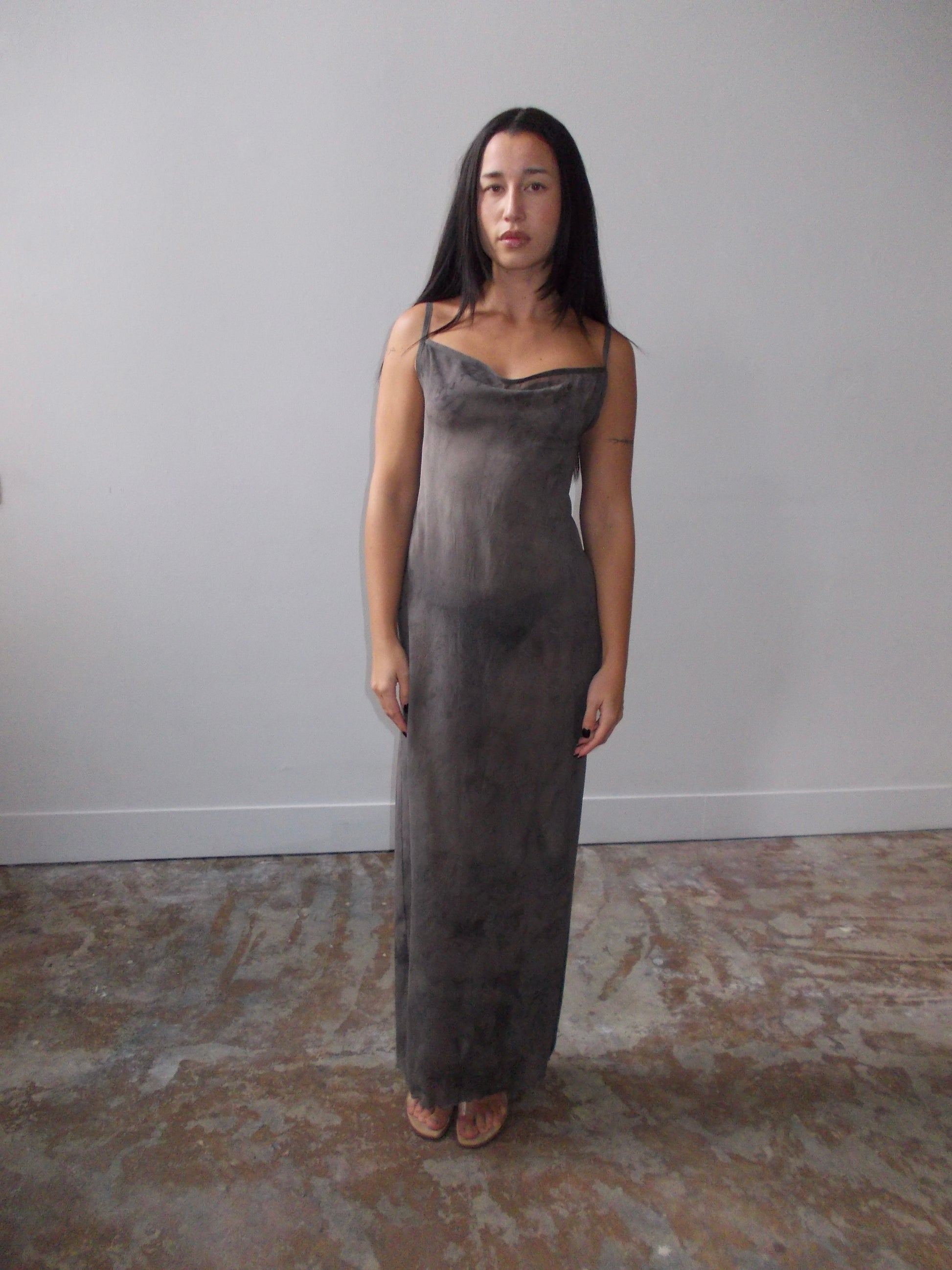 Chiffon Silk Maxi Dress – Naturally Dyed in Brown/Grey Tones